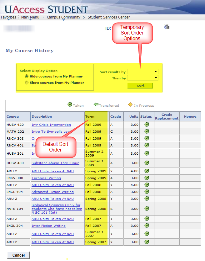 My Course History-Sort Order Defaults From Newest to Oldest Term