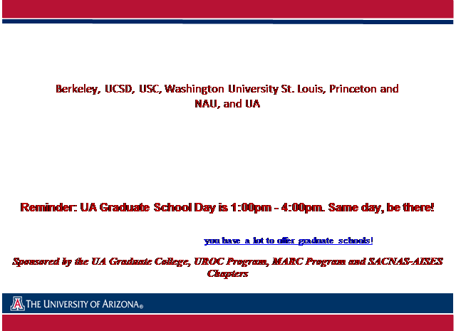 As you know, UA Graduate School Day is next Wednesday, November 6th, 1pm -