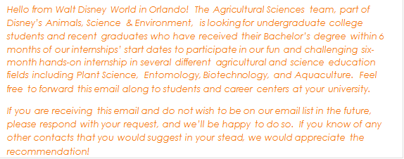 [Agvisors] FW: Disney's Agricultural Sciences Internship Opportunities - Now Accepting Applications