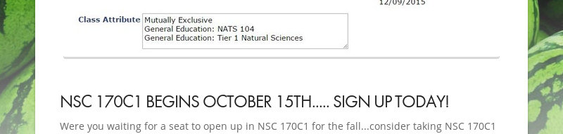 NSC 170C1 BEGINS OCTOBER 15TH..... SIGN UP TODAY! Were you waiting for a seat to open up in NSC 170C1 for the fall...consider taking NSC...