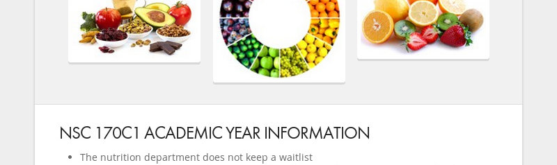 [NSC 170C1 ACADEMIC YEAR INFORMATION The nutrition department does not keep a waitlist The nutrition...]