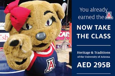 If you have a student who needs just a few more credit hours, have him/her consider AED 295B - The Heritage and Traditions of the University of Arizona. This is NOT a general education course, but it's a fun elective. I am the course instructor and have had as many as 300 students enrolled in the course. The course is offered each semester and I am attempting to boost enrollment for Fall 2018.