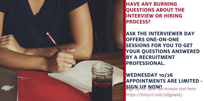 We still have some slots left for students to sign up for a 20 minute one-on-one with an industry recruiter. Please send this out to exceptional students! This is a great chance for students to get to turn the tables on a job interviewer and get their questions answered about what recruiters are looking for, common interview mistakes, and ways to improve their chances at landing the job.