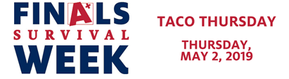 Arizona Student Unions is excited to host the Finals Survival Week “Final Bear Down” Taco Thursday, as part of the division’s efforts to help students best navigate the final exam period. We are seeking volunteers to help staff this event and the support of our colleagues is what has made this event a success in the past - so please consider joining us.