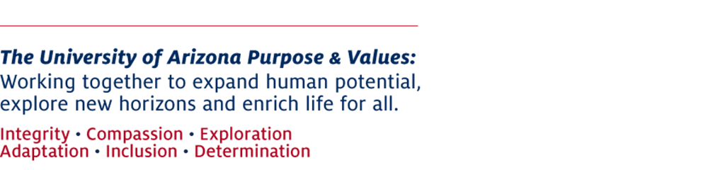 [Integrety, Compassion, Exploration, Adaptation, Inclusion, Determination]<https://brand.arizona.edu/signature>