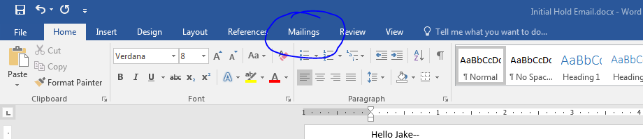 2. Open the "Hold Mail Merge Email3.5.20" document and add your email signature. Make any changes you'd like to make it sound more like you.
