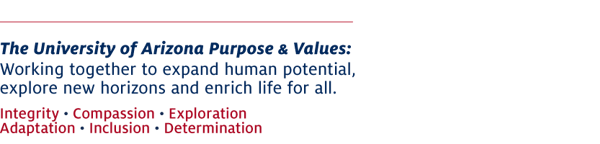 [Integrity, Compassion, Exploration, Adaptation, Inclusion, Determination]<https://brand.arizona.edu/signature>