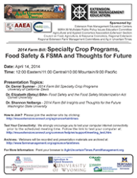 2014 Farm Bill - Specialty Crop Programs, Food Safety & FSMA and Thoughts