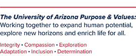 [Integrity, Compassion, Exploration, Adaptation, Inclusion, Determination]<https://brand.arizona.edu/signature>