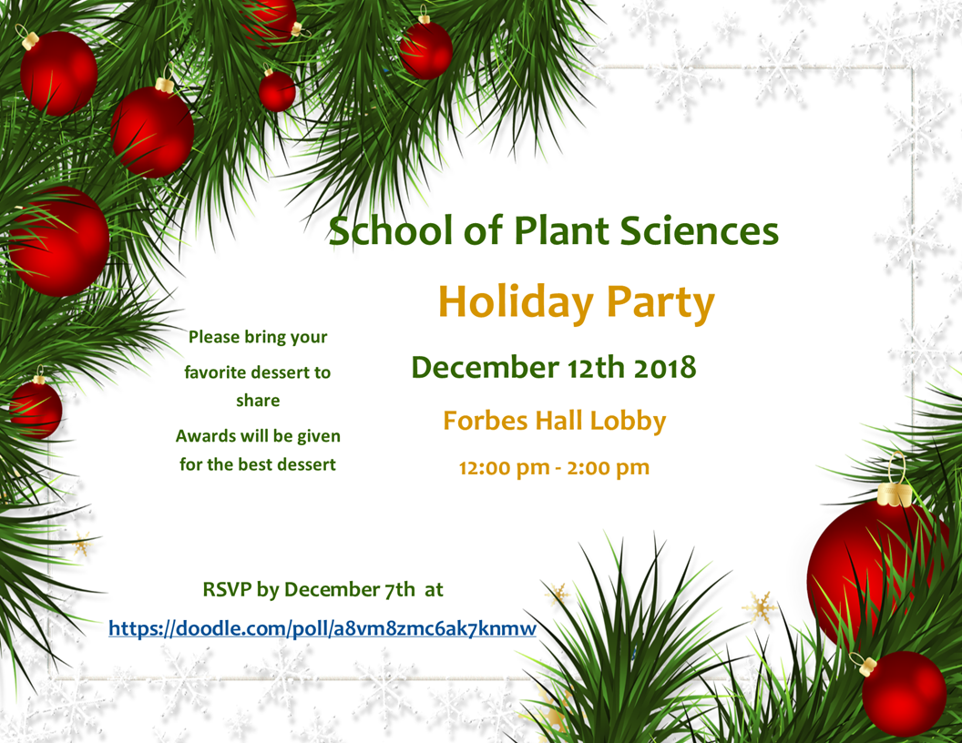 [Plsugs] Sign up for the School of Plant Sciences Holiday Party- December 12