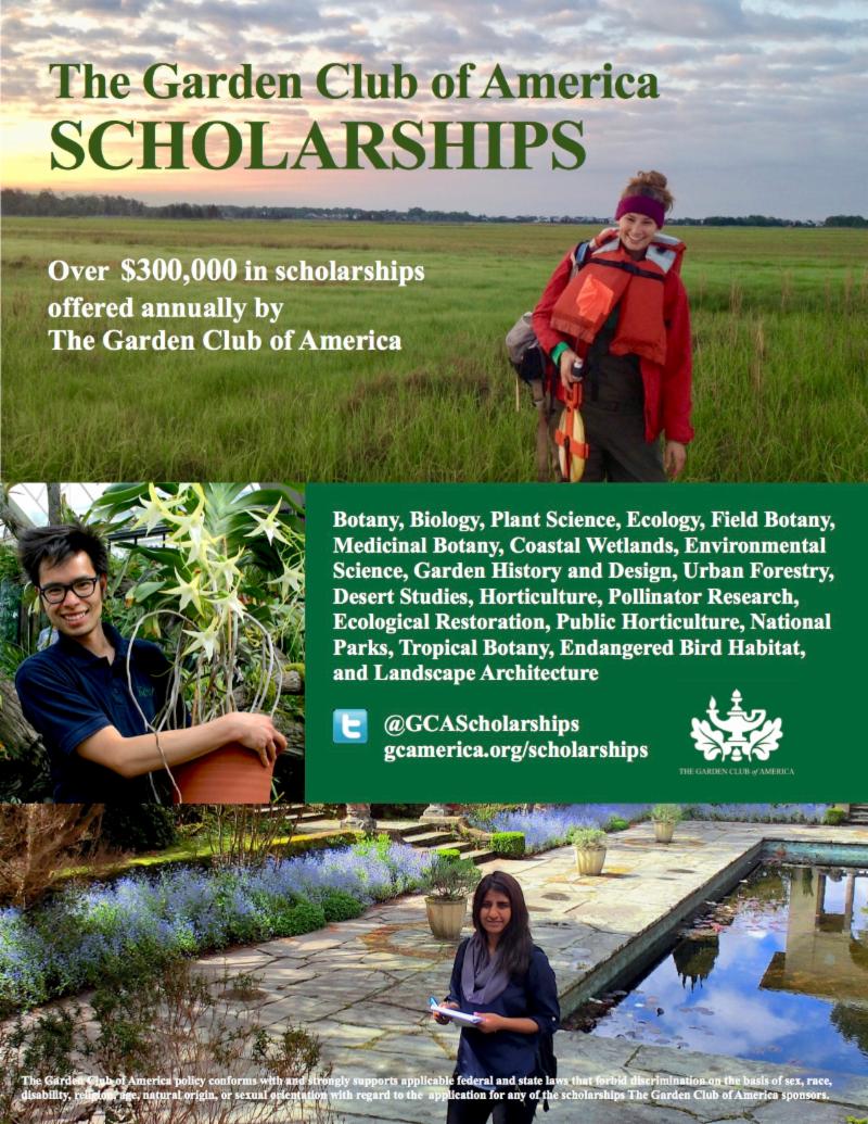 Please share the GCA scholarship webpage www.gcamerica.org/scholarships<http://r20.rs6.net/tn.jsp?f=001kSn9jluq34uLM0qMvL0rQNryIV-tP9HmUD18DsDsAtFQT6-TOLUTUvq_3kdqhIBKoboNiHqiGbN9YuKaKmjbfAy8Z_EIT9w45P5UkV_zHtqfX_VGoce0R6vkxySQBazclLuytxYfYZo_HE6B3-ygRRVZsk8uwCL7X_EWG7eo1wYKa4ZcF8x3XUDEhkIRwgjK&c=459idU7ZM_R3vkyXtc0krW71Y-QPrKoe7kBvTFnZmcjNTRzb8MbZoQ==&ch=whxwYeYsjD0uGbx5bPS1mRcyW-pAHhAsH04M4fPihTiVu3l0KyJBWQ==> with qualified students seeking funding for study or research in the areas of Botany, Coastal Wetland Studies, Conservation, Desert Studies, Ecology, Garden History & Design, Horticulture, International Study, Landscape Architecture, Native Bird Habitat, Native Plant Studies, Pollinator Research, Public Horticulture, and Urban Forestry. Applicants must be U.S. citizens or permanent residents enrolled in U.S. institutions.