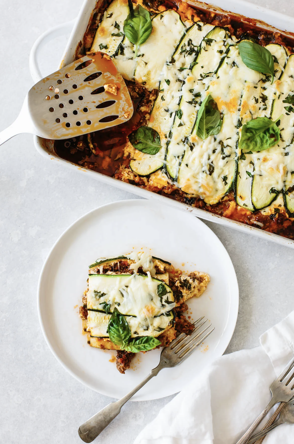 Zucchini lasagna is a fresh take on a classic comfort food dish. It’s loaded with veggies, but still has the rich flavors and scrumptious texture of a traditional lasagna. Top it off with some grated parmesan cheese and basil leaves, and you’ll have the perfect weeknight meal for the whole family.