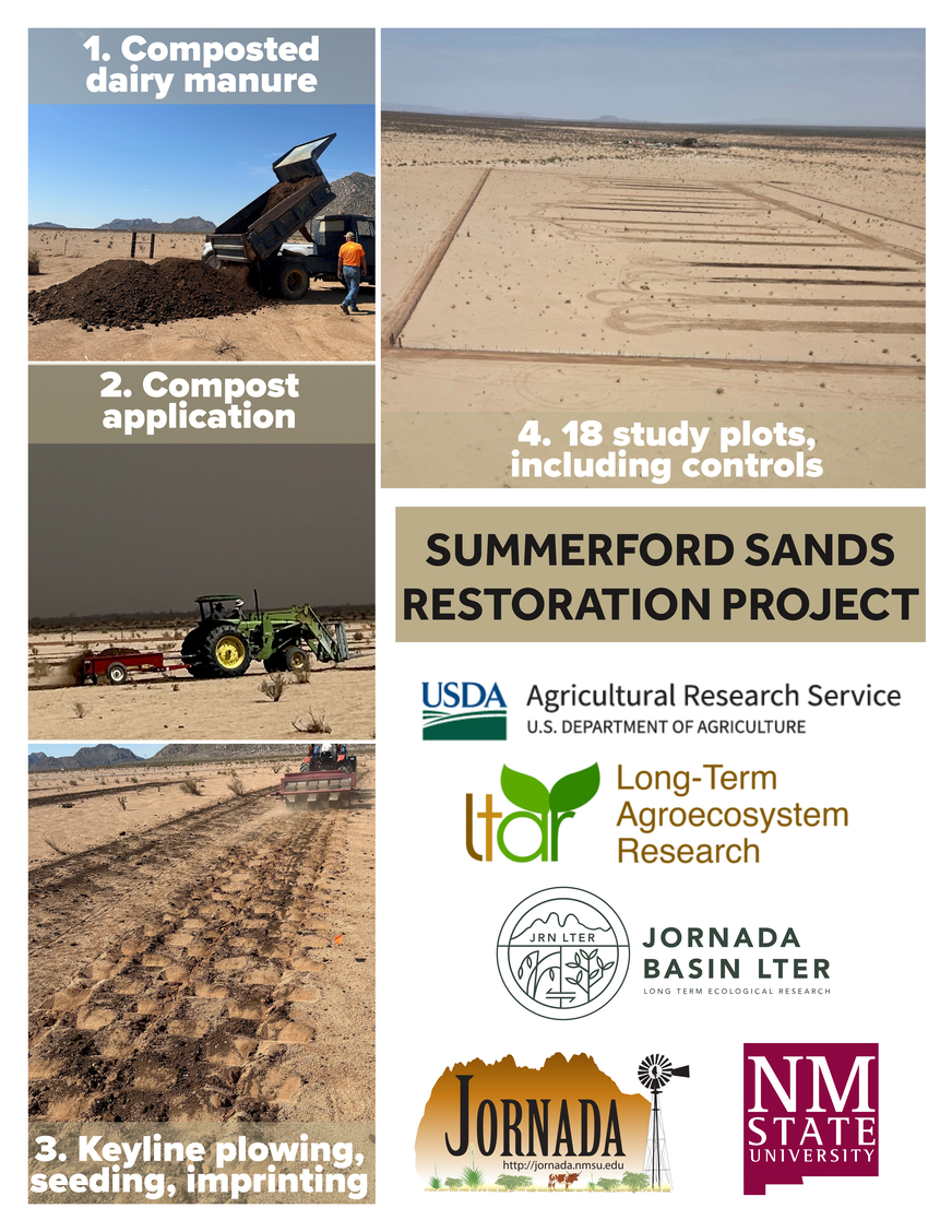 Join Dr. Sheri Spiegal from the Las Cruces USDA-Agricultural Research Service<https://vbqpbd.clicks.mlsend.com/tl/c/eyJ2Ijoie1wiYVwiOjU0NjMxNixcImxcIjoxNjM0NzgxNjA0NzA0NDM3NzIsXCJyXCI6MTYzNDc4MTcyMDc3MTMxNTc1fSIsInMiOiIxMjE4NDE0Y2NjYTMwNzViIn0> and Jornada Basin long-term ecological research<https://vbqpbd.clicks.mlsend.com/tl/c/eyJ2Ijoie1wiYVwiOjU0NjMxNixcImxcIjoxNjM0NzgxNjA0NzY3MzUyMzAsXCJyXCI6MTYzNDc4MTcyMDc3MTMxNTc1fSIsInMiOiI1YjFkMzlmMzk3YmY5ZWZlIn0> Principal Investigator Niall Hanan on a tour of the "Summerford Sands" experiment, including the new restoration experiment that includes imprinting/seeding with manure, and an experiment simulating rangeland vegetation recovery under solar power installations (range-voltaics). Learn how applied research at The Jornada Basin is helping us develop restoration methods to promote climate and energy resiliency in our dryland ecosystems!